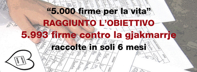 La campagna di raccolta firme si è svolta nell'arco di sei mesi ed è stata affiancata da una petizione on line che ha raccolto altre 349 firme da tutto il mondo. Inoltre per sostenere la campagna circa 300 persone hanno fatto una foto con un cartello che diceva "Unë jam kundër gjakmarrie - Io sono contro la gjakmerria" fra i testimonial più conosciuti Bunna degli Africa Unite, Cisco ex voce dei Modena City Ramblers e Antonio Ingroia.