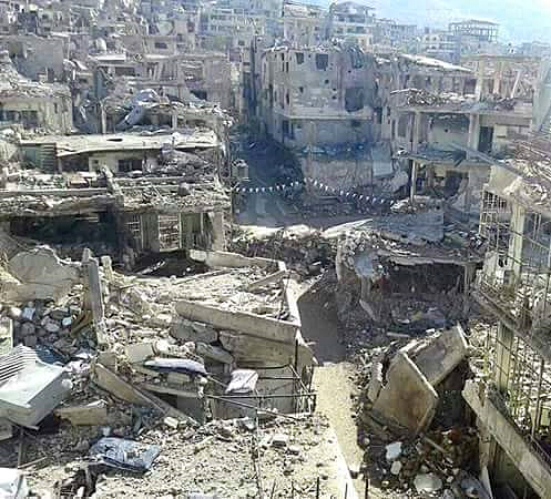 Nuova interruzione: A. R. mi mostra la foto di quello che resta della sua casa ad Homs, macerie... anche R. mi fa vedere sul telefono foto di macerie che sostiene essere quel che rimane di casa sua.