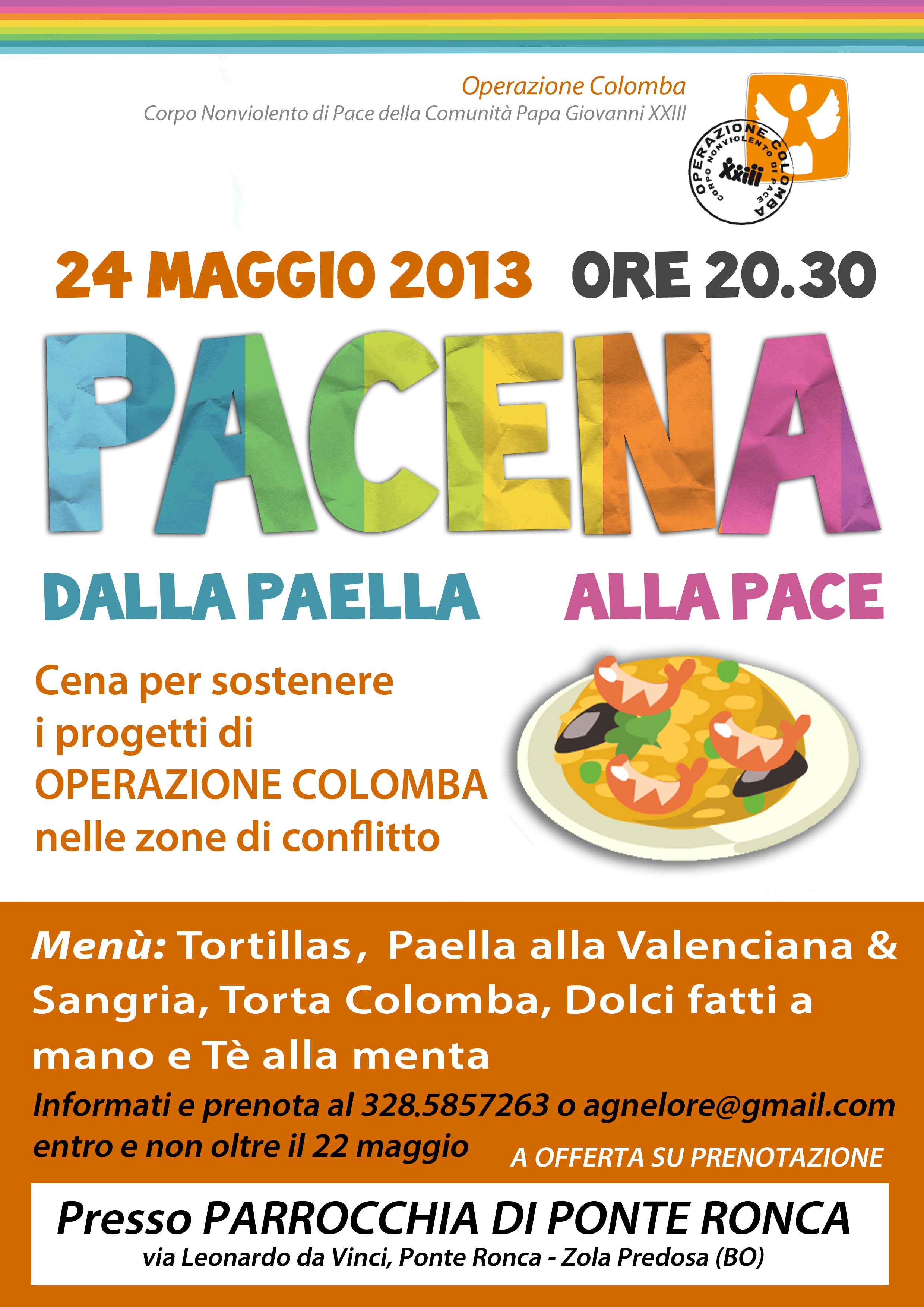 A Bologna, PACEna - dalla Paella alla Pace, venerdì 24 maggio (Segui l'evento su Facebook)