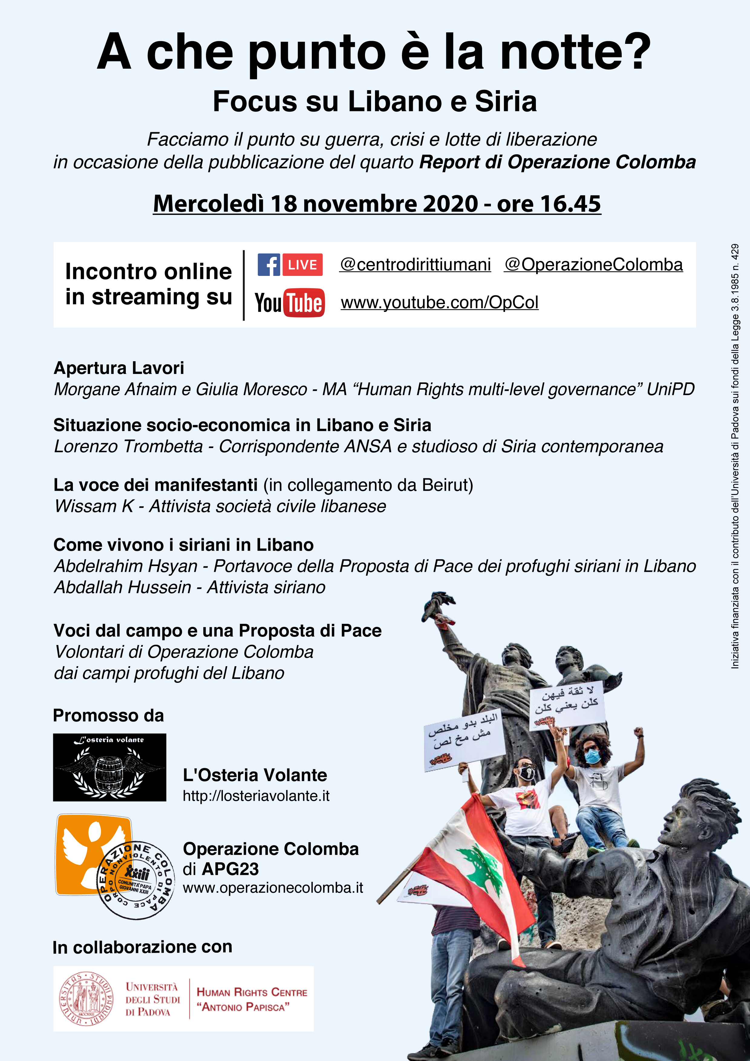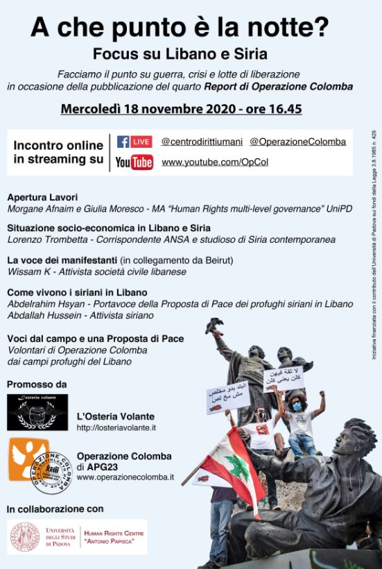 Mercoledì 18 novembre 2020, alle ore 16.45 facciamo il punto su guerra, crisi e lotte di Liberazione in occasione della pubblicazione del quarto Report di Operazione Colomba.