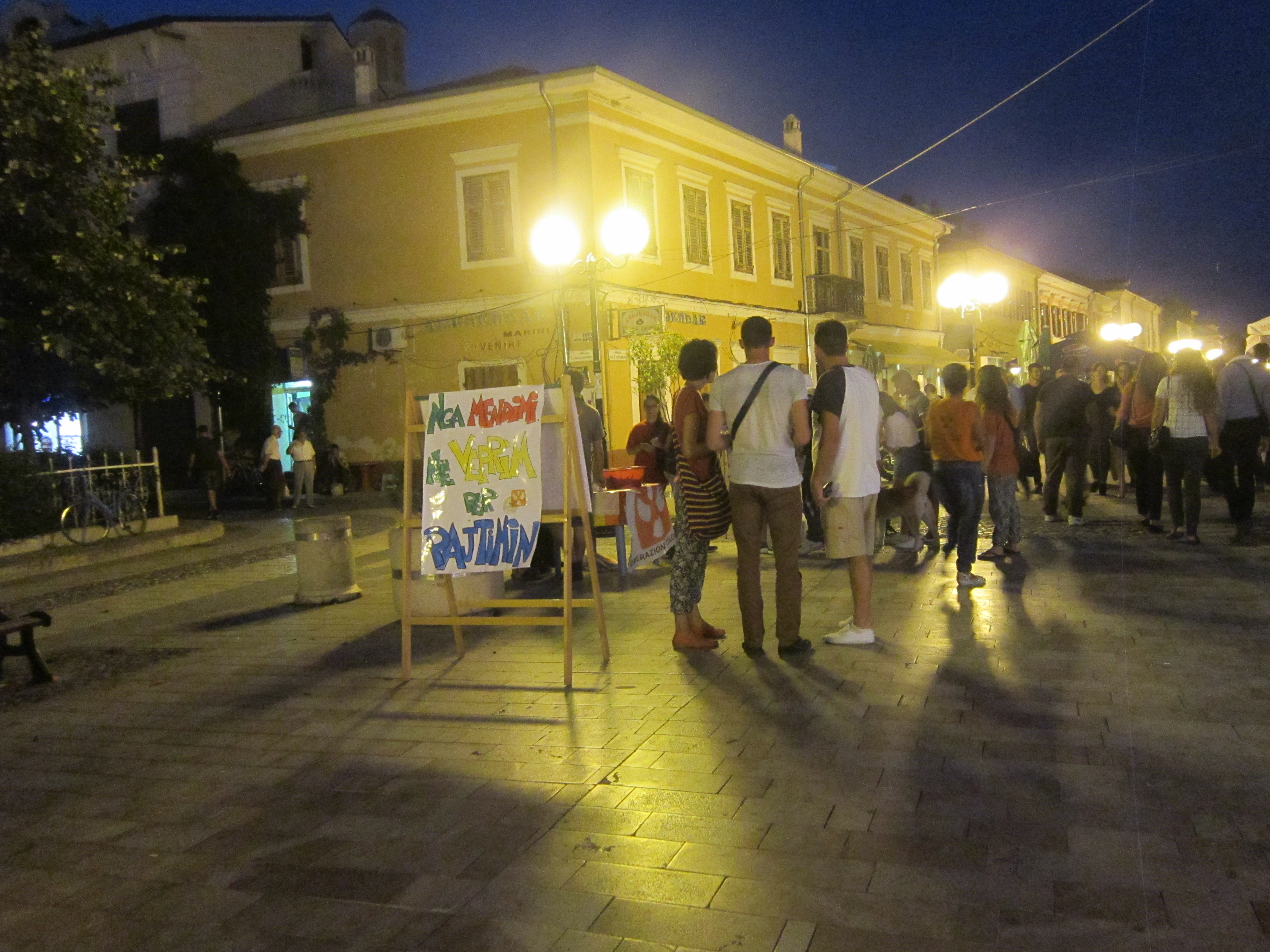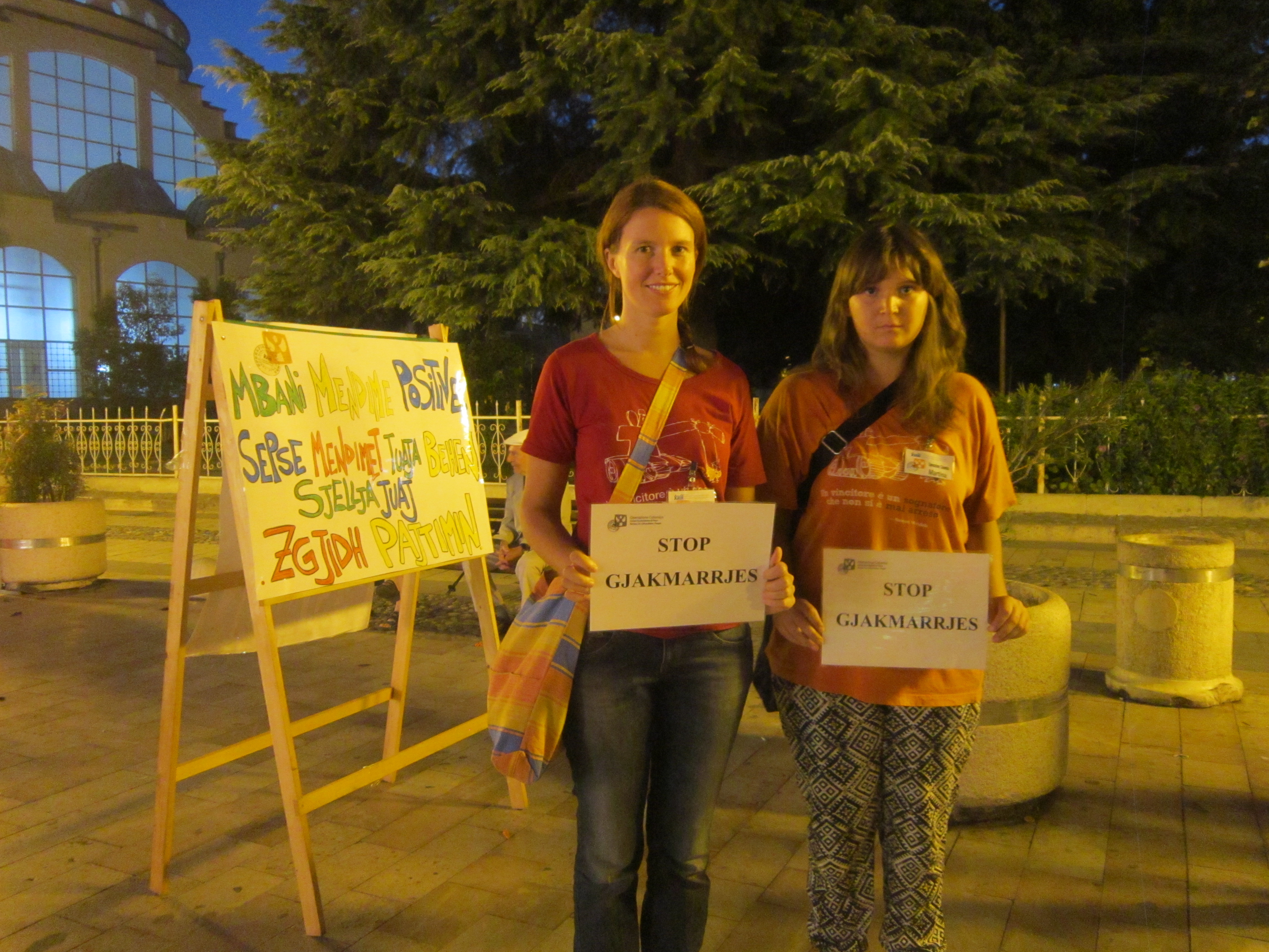 Come ogni mese, il 12 settembre, ha avuto luogo nell’area pedonale di Scutari la consueta manifestazione contro le vendette di sangue, Il gesto simbolico proposto dai volontari di Operazione Colomba è stato ispirato dal mantra di Gandhi che insegna a mantenere i pensieri positivi, poiché, in un circolo virtuoso, i pensieri positivi generano azioni positive.
