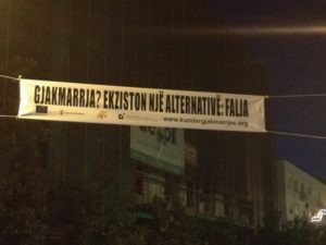On December 10th – 70th Universal Declaration of Human Rights anniversary – we launched the national campaign “Kundër Gjakmarrjes” (“Against blood feuds”) in Shkodër, in order to raise awareness on the vendetta phenomenon among Albanian population and to invite each citizen to take a clear and active stand against the blood feuds. For the occasion more than 2.000 stickers with the campaign’s logo were distributed and 13 banners with messages of peace, forgiveness and reconciliation were put along the main streets of the city. Furthermore, during the evening we organized some performances at the Arka Youth Center as: a video showing about some previous campaigns of opposition to the blood feuds phenomenon implemented by Operazione Colomba; a theatrical reading about the people who decide to live self-isolated to their houses because of the fear of incurring in the revenge; a live music concert by the Albanian singer Jozefina Simoni.