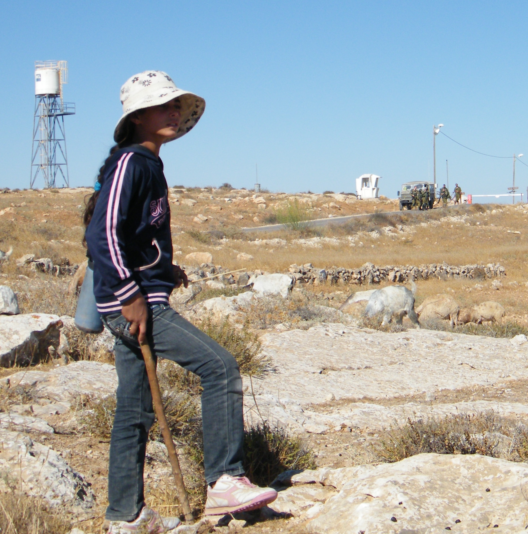 Mona oggi porta al pascolo il gregge di suo padre, che ieri è stato cacciato e minacciato dai militari dell'esercito israeliano mentre pascolava “troppo vicino” ad Avigayil, un avamposto di coloni israeliani.