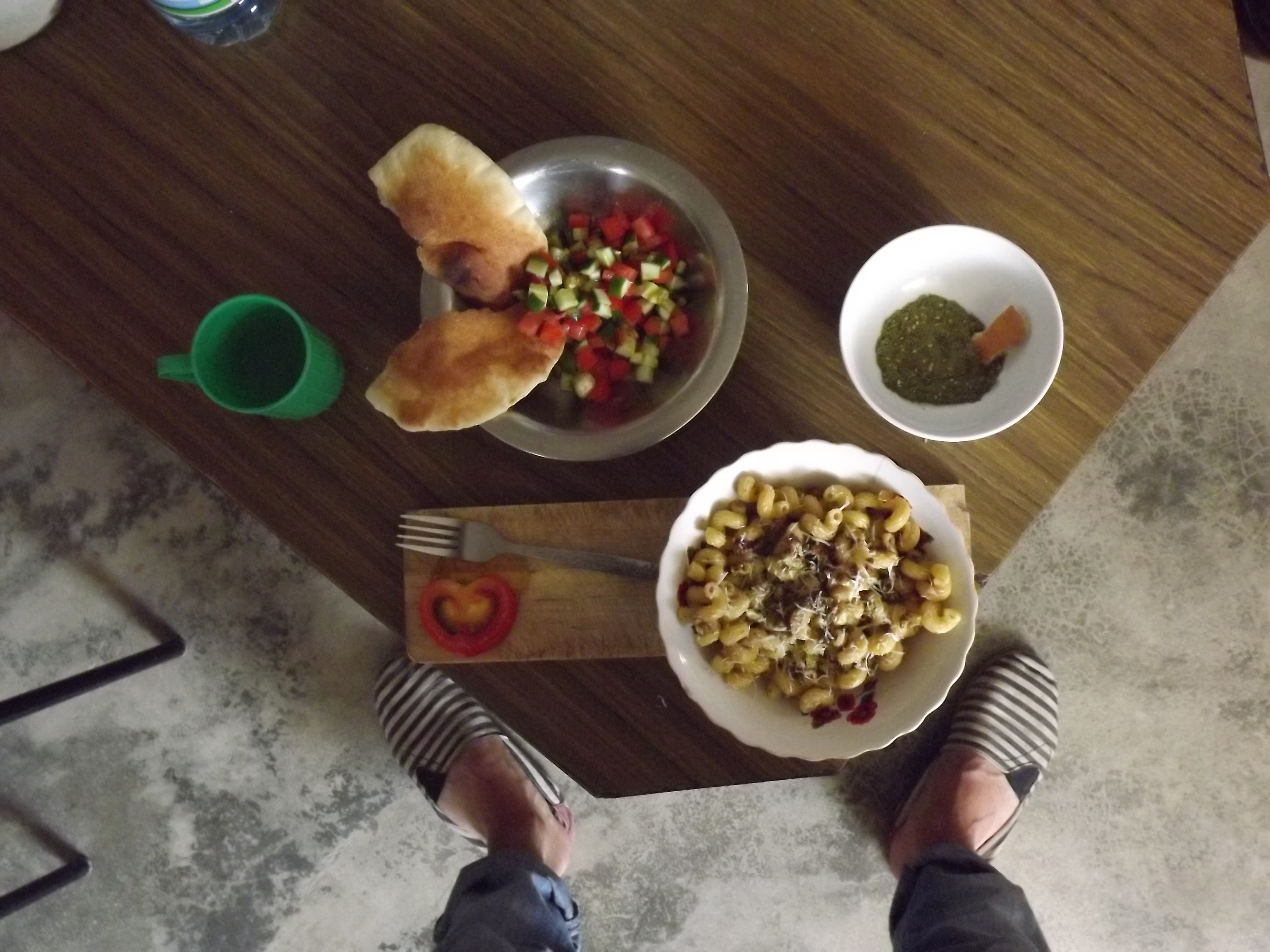 Dentro ci siamo noi. Ne è passata di vita qui, quanta sabbia palestinese ha percorso gli angoli di questa casa, trasportata dal vento che non si ferma mai, eccone un mucchietto proprio lì sotto agli scaffali per i vestiti nella stanza da letto barra ufficio, stabile e inosservata come le piccole ditate bianche sul soffitto annerito laddove la stufa elargisce calde carezze nelle giornate del breve inverno di Tuwani.