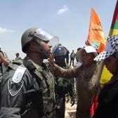 In questa mescolanza di colori e persone, nitido si distingue un cartello bianco, più grande degli altri, sul quale sono stampate alcune fotografie che ricordano a tutti il motivo per cui il 22 Giugno più di 500 persone si sono riunite per manifestare per i villaggi palestinesi di Susyia e Wadi Jehesh.
